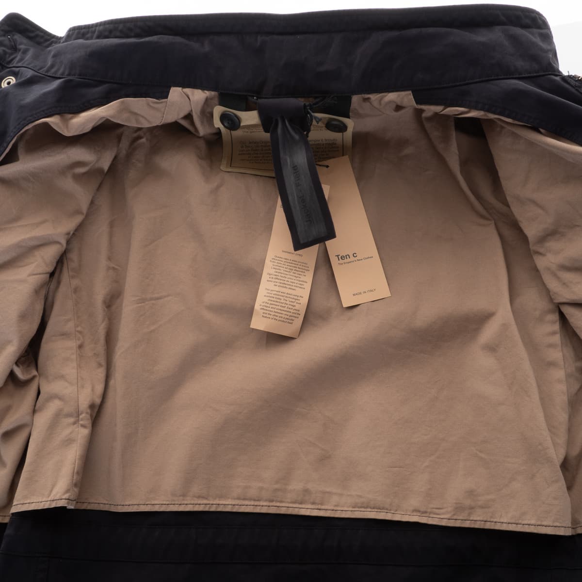 Ten C, The Emperors New Clothes (in Anspielung auf Christian Andersens Märchen "Des Kaisers neue Kleider"), zeigt mit der Forever Kollektion zeitlose und funktionale Jacken aus einem einzigartigen Japanischen Jersey Twill, der sich der Anatomie des Besitzers anpasst. Ten C entwickelt mit handwerklicher Perfektion aus hochwertigem Rohmaterial langlebige Produkte. Betrachtet man die Kollektion ganzheitlich, helfen saisonal unabhängige Produkte von hoher Qualität Abfälle zu vermeiden. Ten C arbeitet ohne typische Markenzeichen, jede Jacke altert mit der Schönheit individueller Authentizität. Die gesamte Kollektion entsteht aus einem Stoff, das Design kommt von Alessandro Pungetti und Paul Harvey und wird exklusiv in Italien gefertigt.