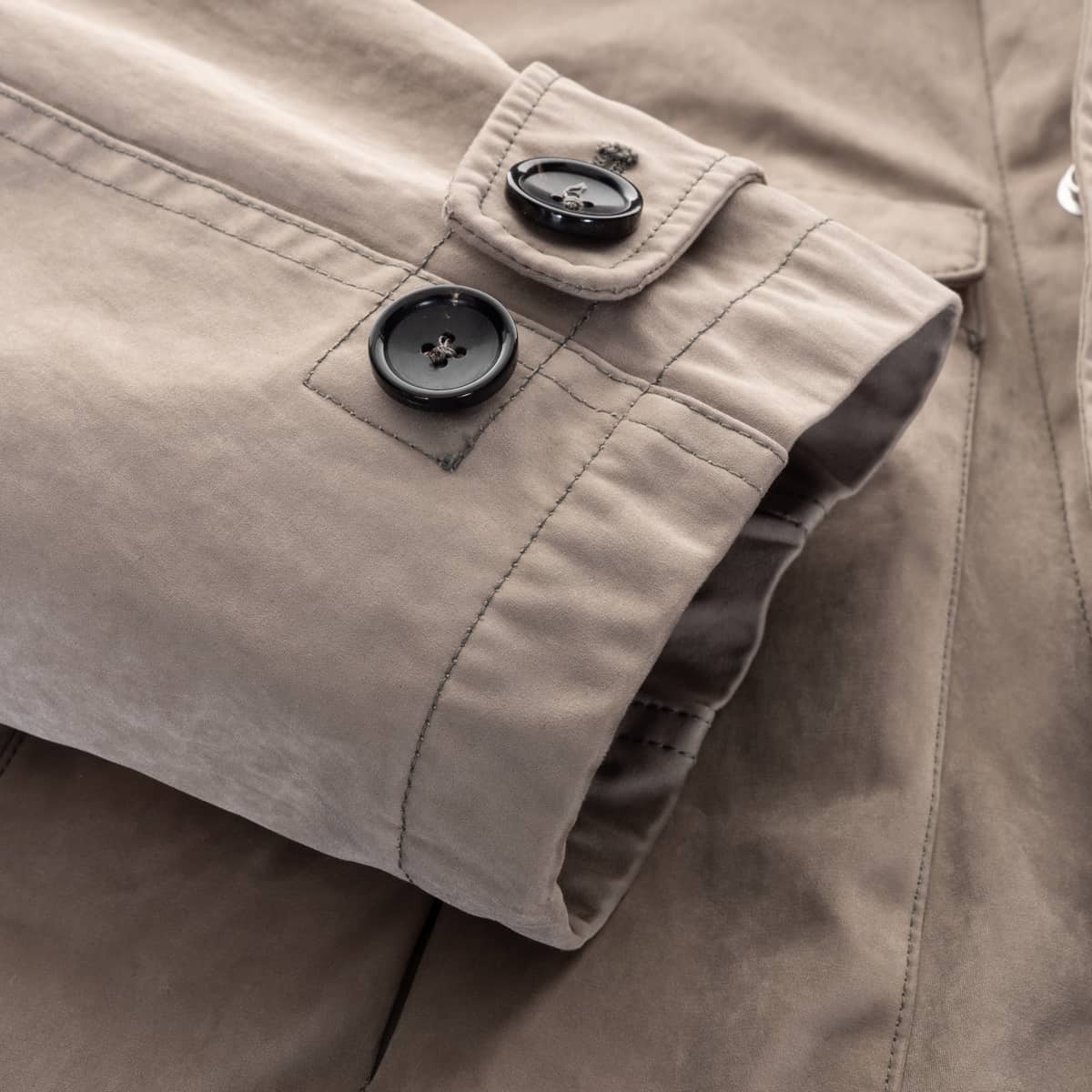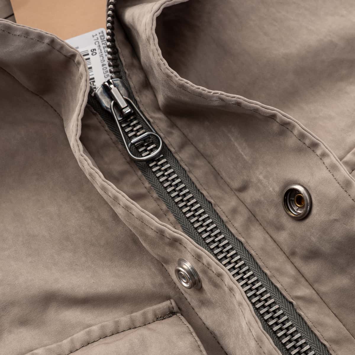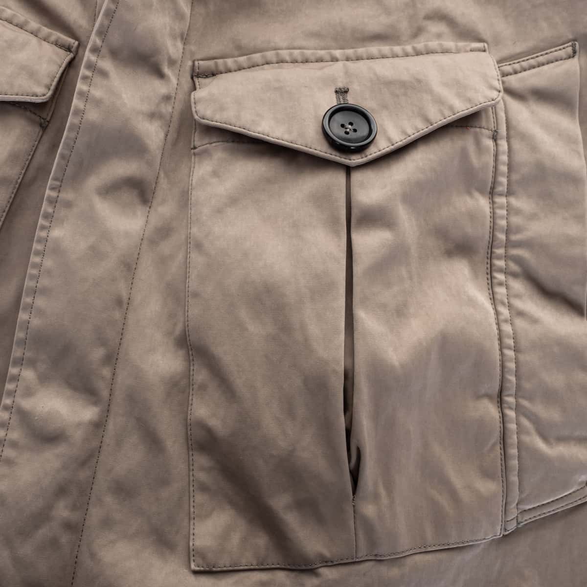 - Geöffnete Interpretation klassischer Feld- oder Tarnmäntel