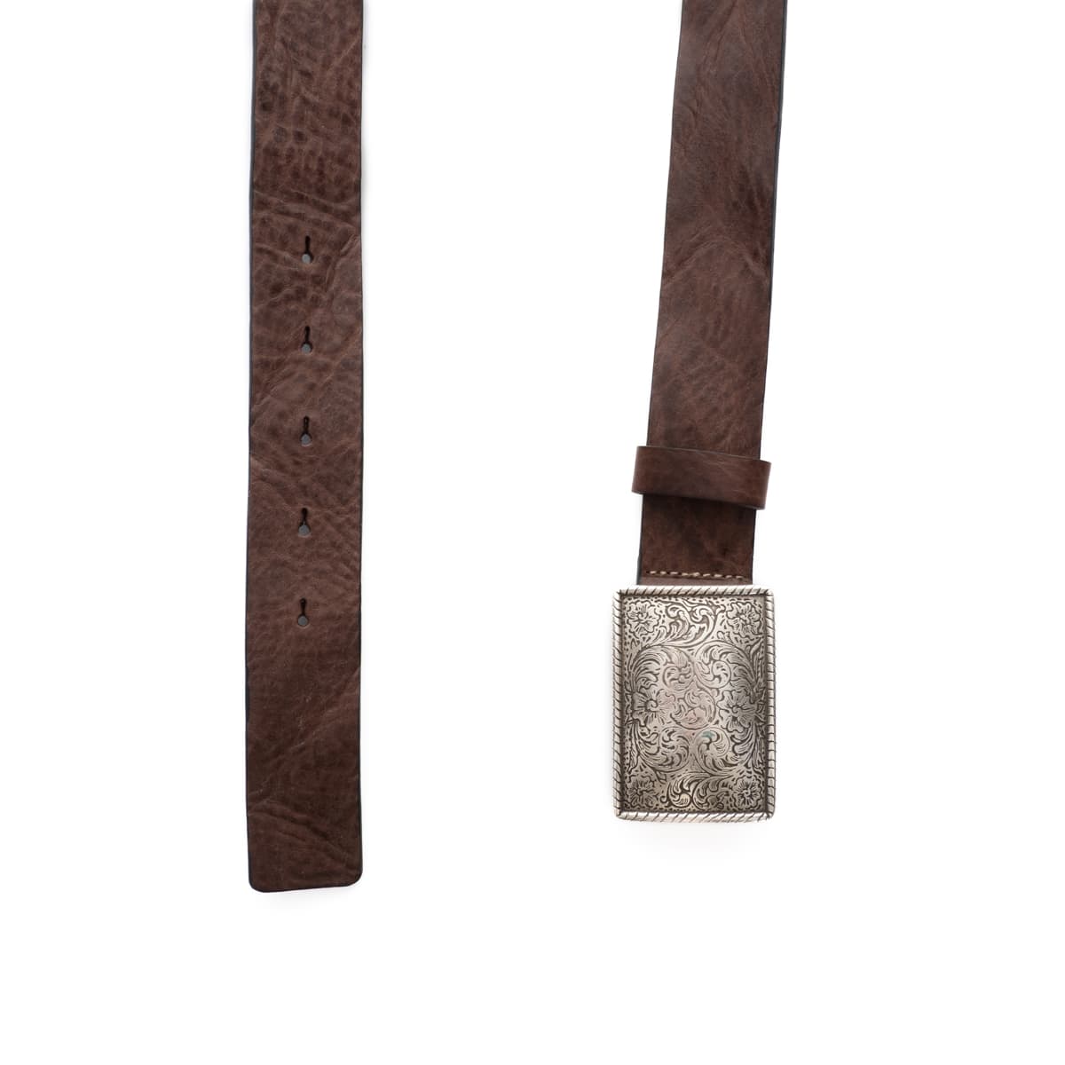 Der Gürtel Ragaz von Themata fällt durch seine detailreich verzierte Schließe sofort ins Auge. Gefertigt aus robustem Rindsleder in einem warmen Braunton, bringt er rustikalen Charme und handwerkliche Eleganz in Einklang. Die aufwendig gravierte Schließe in Western-Optik macht den Gürtel zu einem besonderen Hingucker – ideal für alle, die das Außergewöhnliche schätzen. Mit seiner Breite von 3,5 cm passt er perfekt zu Jeans und Casual-Outfits.