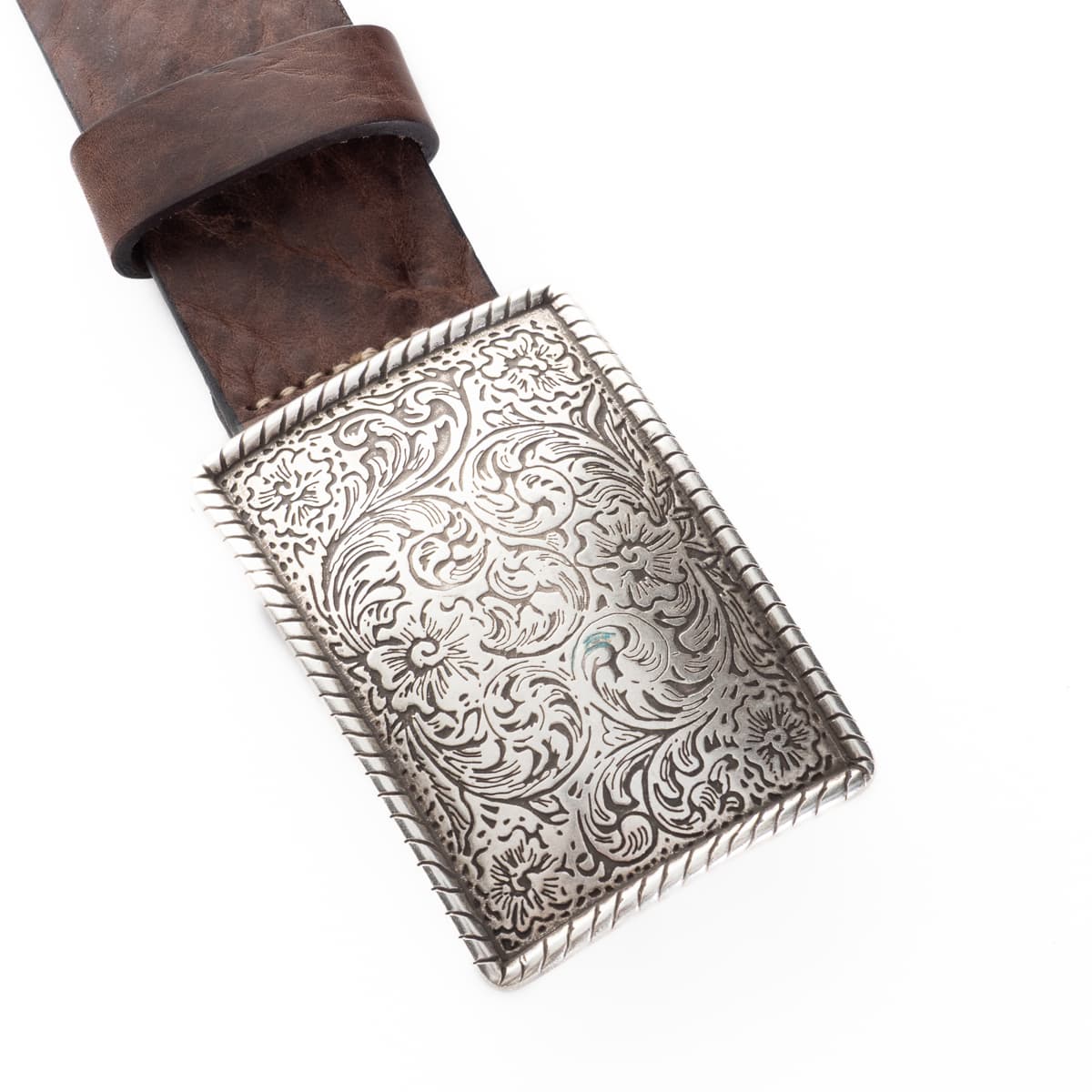 - Silberfarbene, gravierte Wechselschließe in Western-Optik
