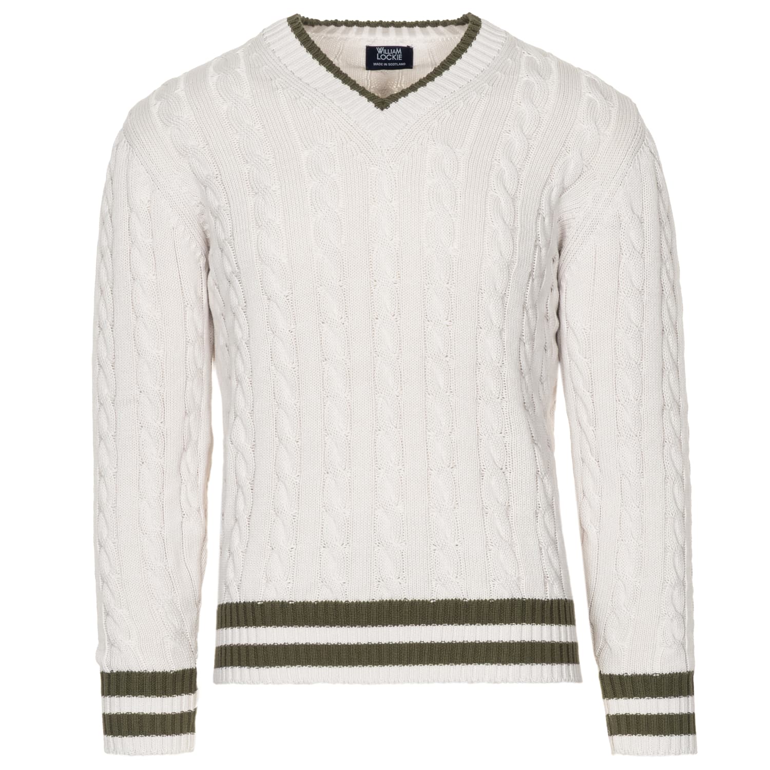 Hochwertiger Cricket-Pullover von William Lockie aus reiner Baumwolle. Der klassische V-Ausschnitt in Kontrastfarbe sowie das traditionelle Zopfmuster verleihen dem Modell seinen zeitlosen, sportlich-eleganten Charakter. Die weiche aber robuste Strickqualität sorgt für ein komfortables Tragegefühl – ideal für den täglichen Einsatz.