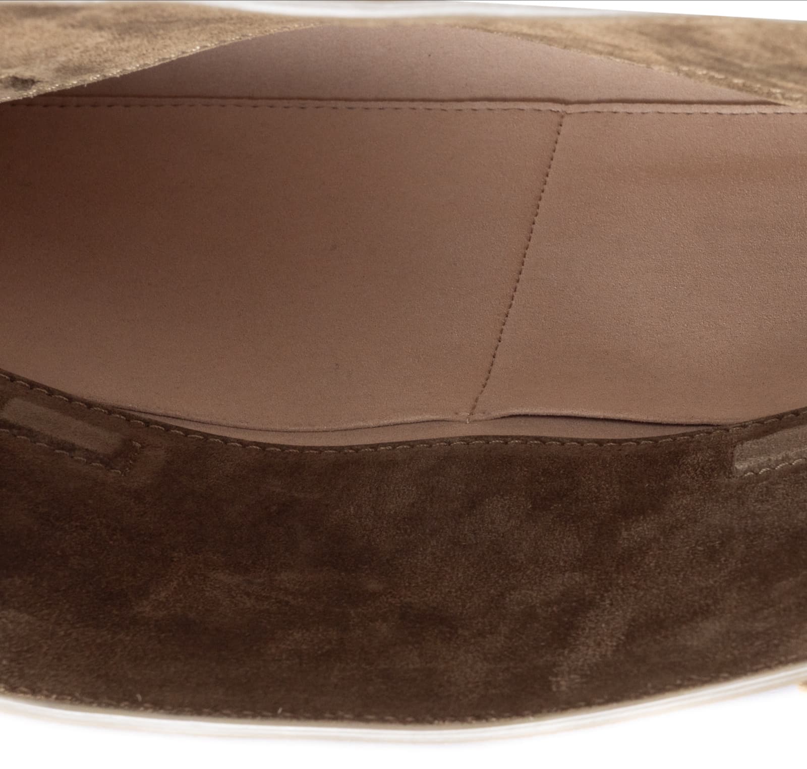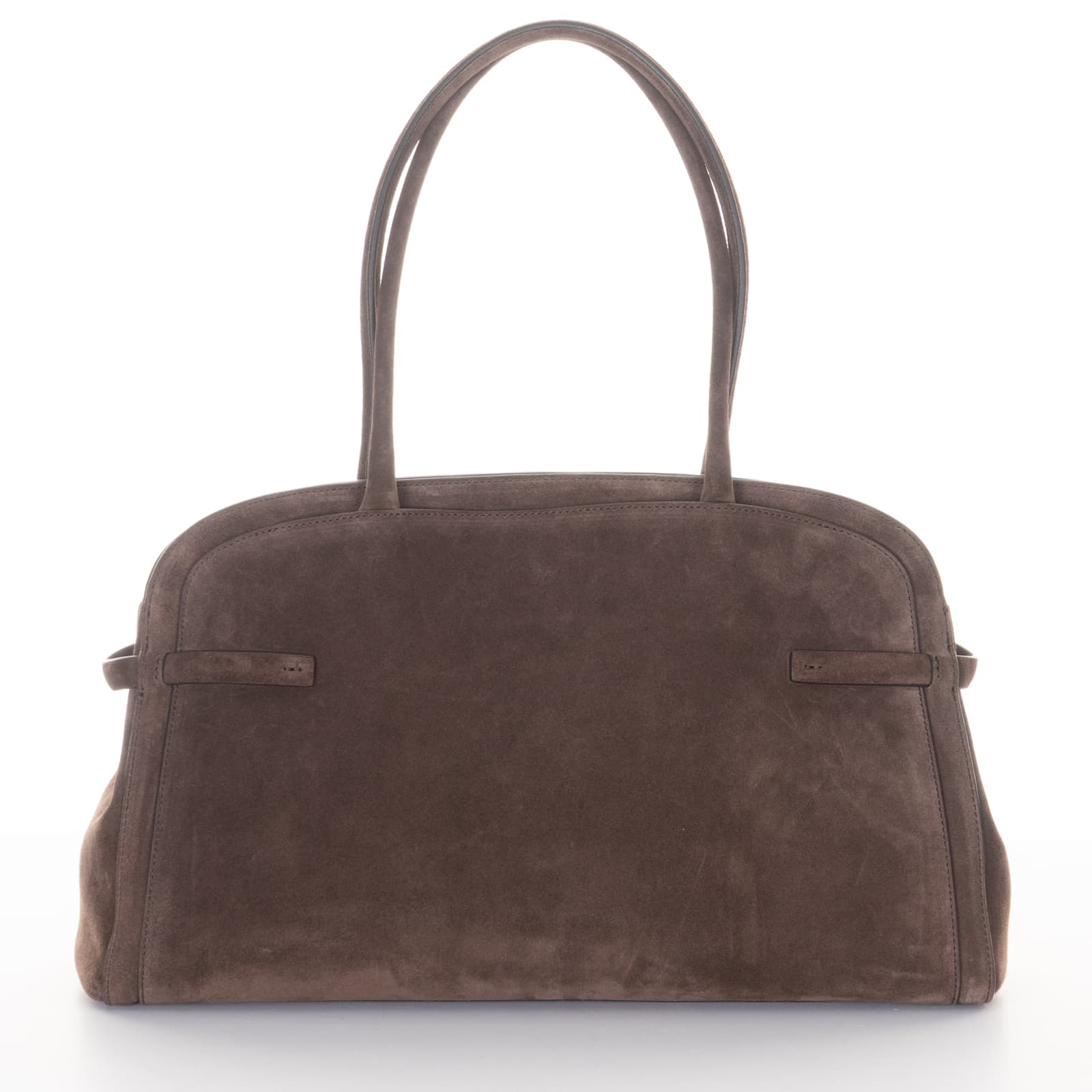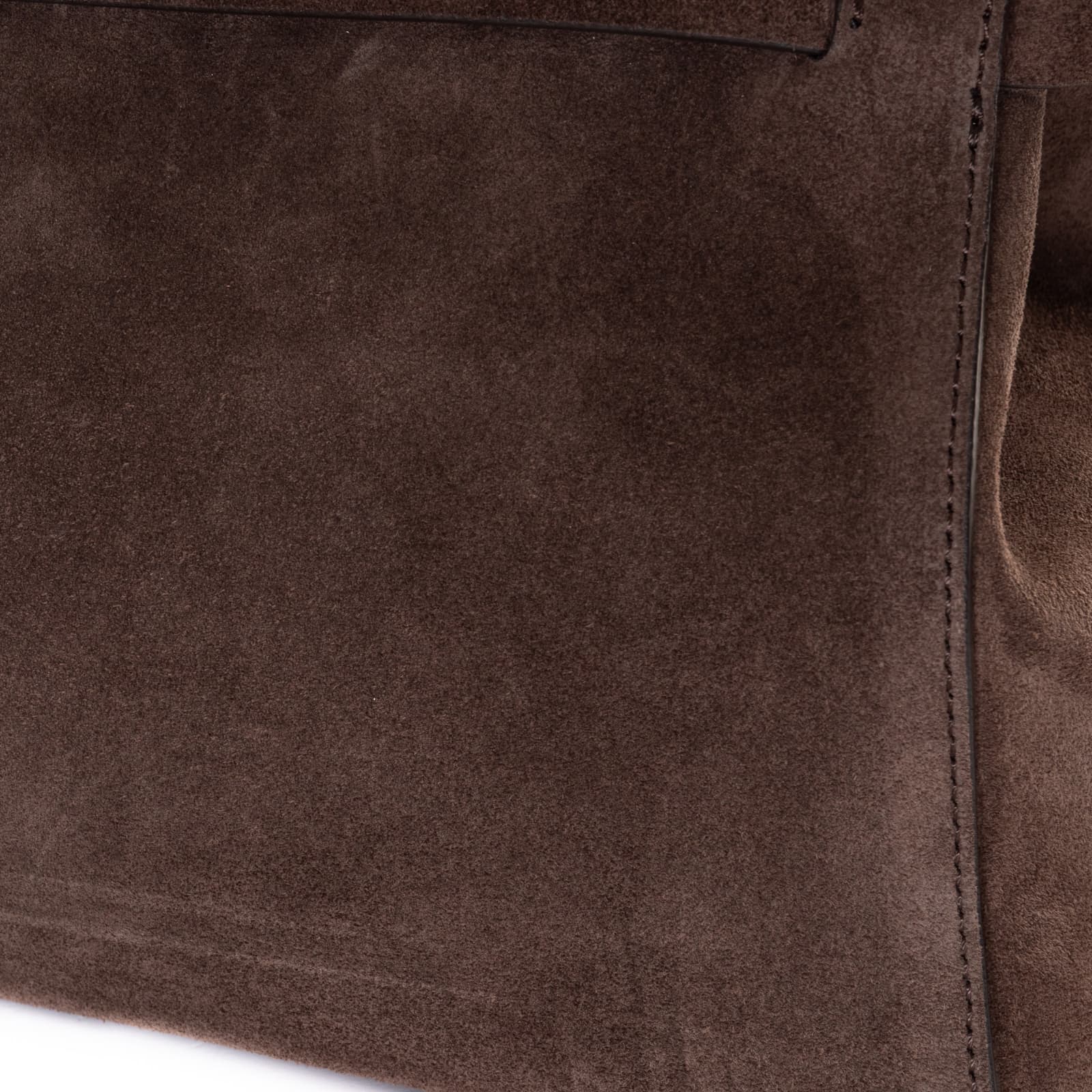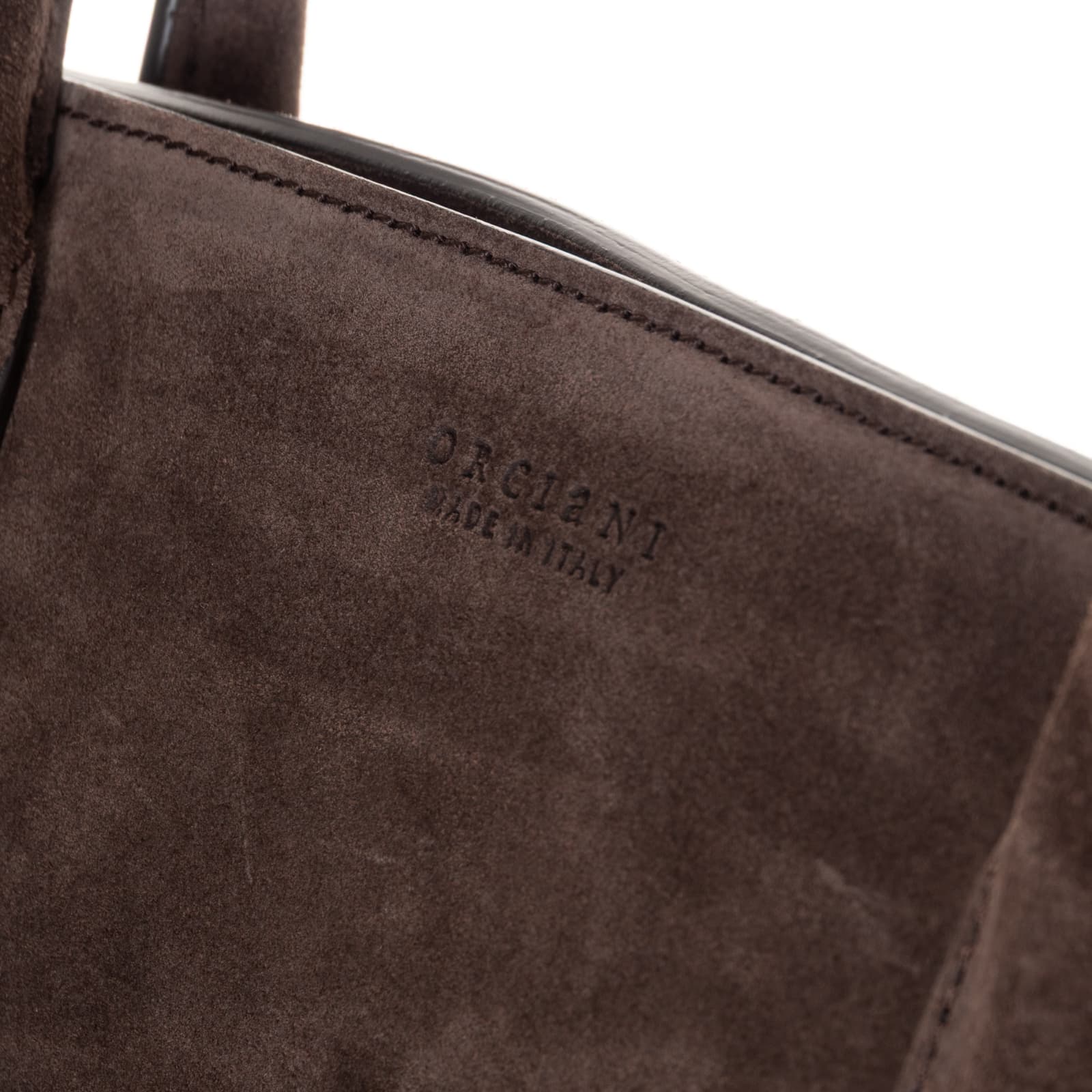 Elegante Handtasche von Orciani aus feinem Veloursleder. Das Modell überzeugt durch seine schlichte, feminine Form mit klaren Linien und edlen Details. Der Magnetverschluss unter der Umschlagklappe sorgt für ein dezentes Öffnen und Schließen, während ein separates Reißverschlussfach im Inneren zusätzliche Sicherheit bietet. Mit zwei Tragehenkeln und einem abnehmbaren, verstellbaren Schulterriemen lässt sich die Tasche vielseitig tragen. Die samtige Oberfläche des Veloursleders in warmem Braunton verleiht ihr einen luxuriösen Charakter – ein stilvoller Begleiter für Alltag und Business.