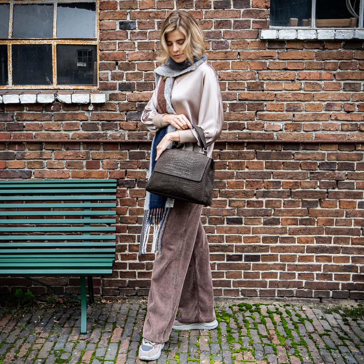 - Mit kurzem Tragehenkel und zusätzlichem Schultergurt