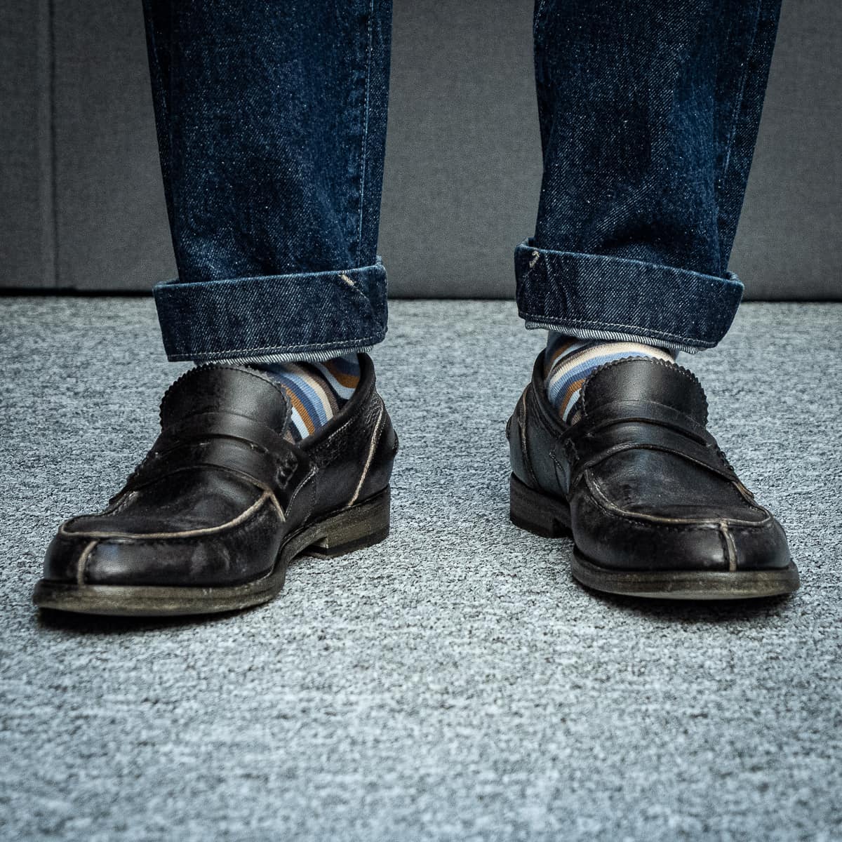Der Loafer 9419 von Shoto verbindet handwerkliche Tradition mit einer bewusst rauen, authentischen Ästhetik. Gefertigt aus robustem Pferdeleder und durch aufwendige Wasch- und Färbeprozesse veredelt, entsteht eine lebendige Oberfläche mit natürlicher Patina – jedes Paar ein Unikat.