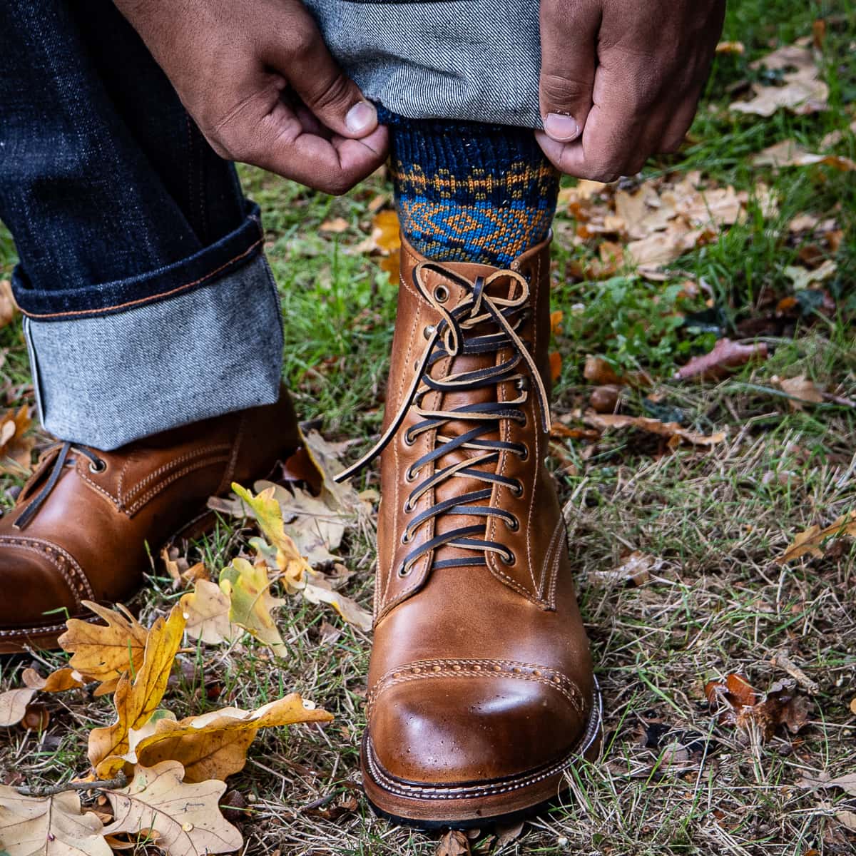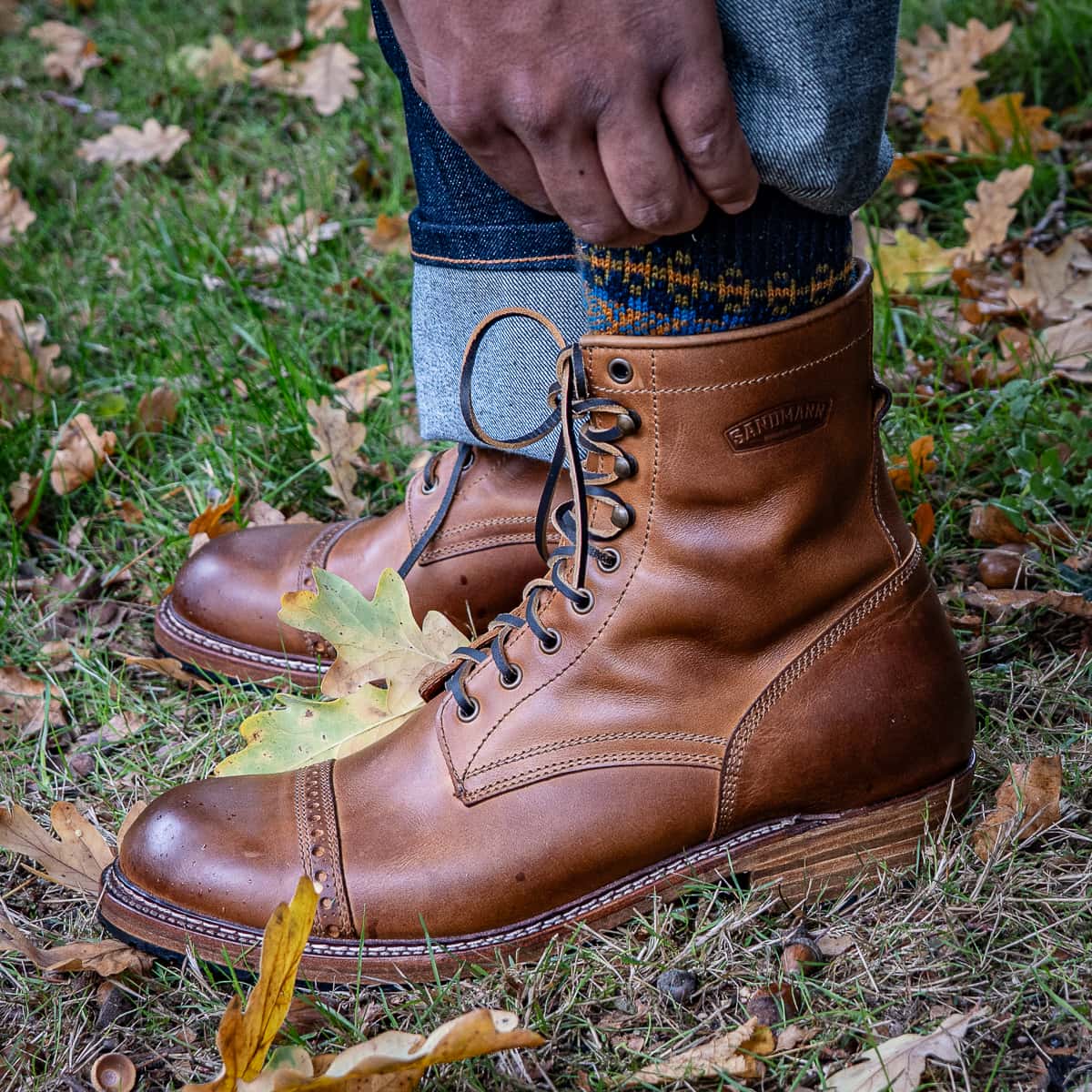 Das kräftige Rindleder ist fest und wertig, wird aber mit jedem Tragen geschmeidiger und passt sich immer mehr dem eigenen Fuß an. Mit der Zeit entsteht eine ganz persönliche Patina, die den Schuh zu einem echten Begleiter macht.