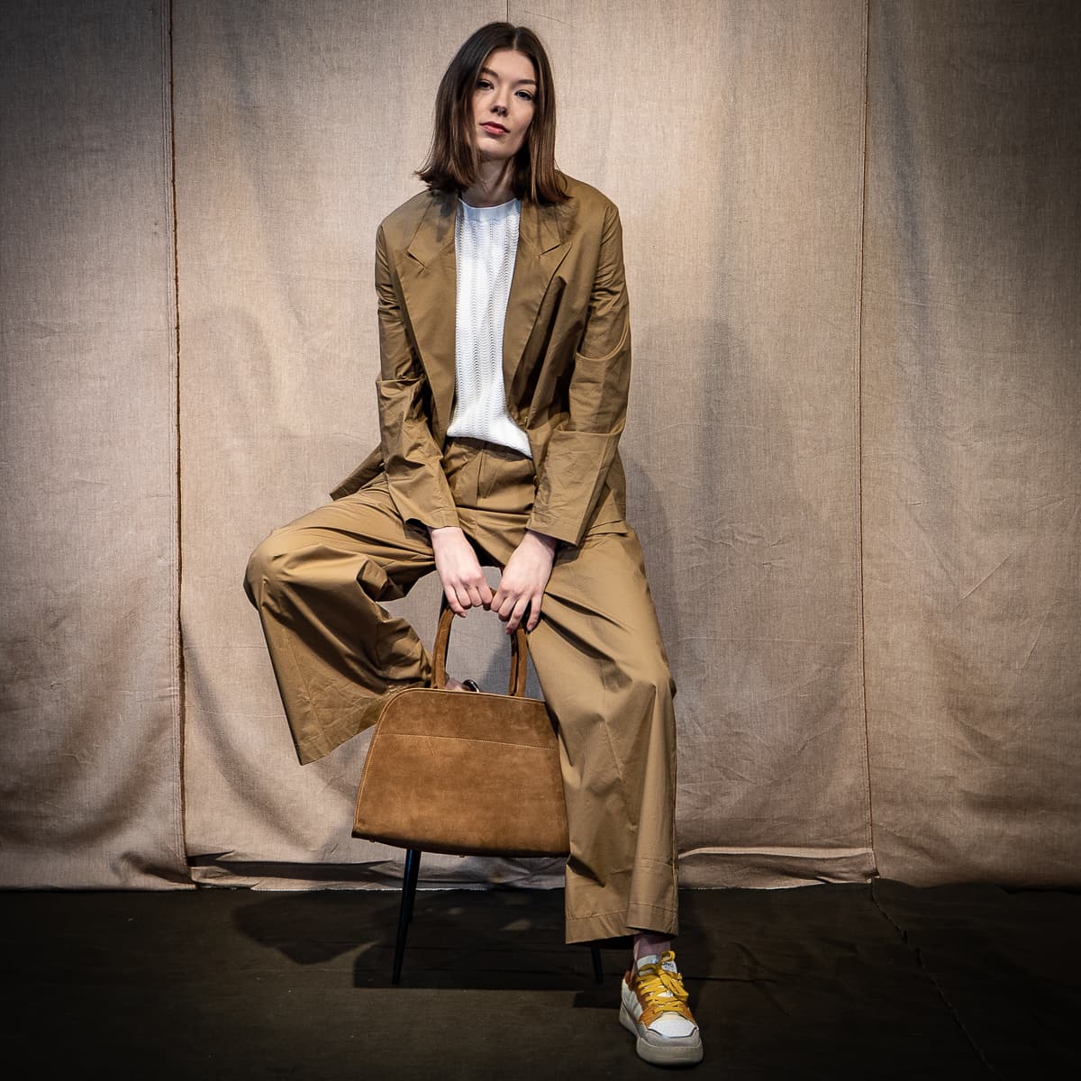 FLOOR ist unkonventionelle Damenmode. Die moderne Frau steht im Mittelpunkt der Kollektion, die sich aus mehreren Schichten zusammensetzt. Grafische Linien und eklektische Drucke vereinen sich mit luxuriösen Texturen, die alle einen Hauch von Vintage haben. Dezente und weiche Kleidungsstücke, gepaart mit taillierter Passform, üppigen Strickwaren. Entspannt und mühelos, aber nicht weniger elegant.