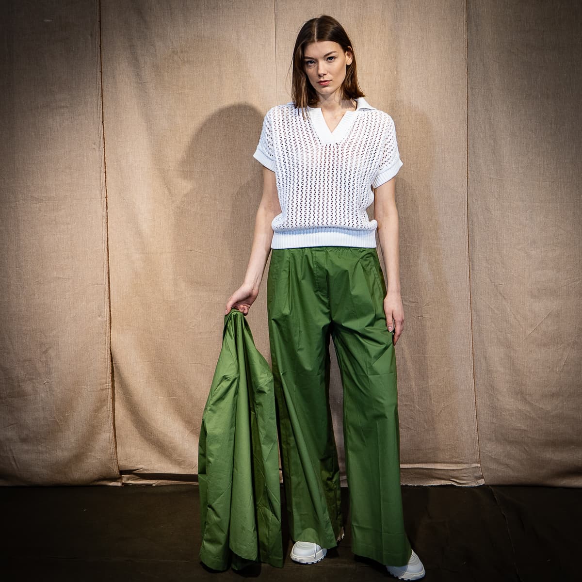 Luftige Wide-Leg-Hose mit elastischem Bund für maximalen Komfort. Das leichte Baumwollgewebe mit papierartiger Haptik verleiht eine moderne Struktur. Perfekt für entspannte, stilvolle Looks.